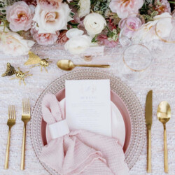 Crystal Chiavari Chair, Gold Single Beaded Charger, Silver Fork, Silver Knife, Crystal Chandelier, Bella Gold Water Goblet, Bella Gold Winer Glass, Bella Gold Champagne Flute